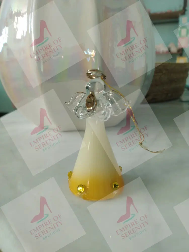 Miniature Glass Angel hand decorated with tiny 2.5 mm flatback crystals, matching each color of the angel.