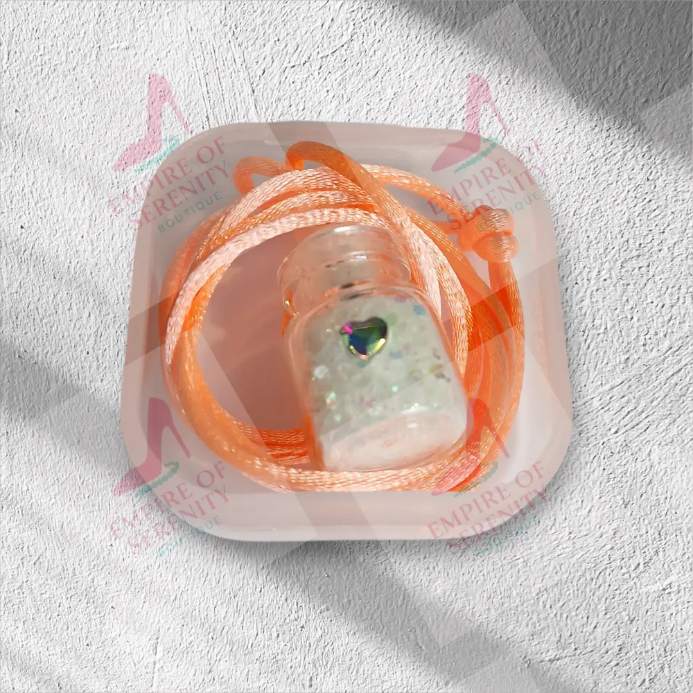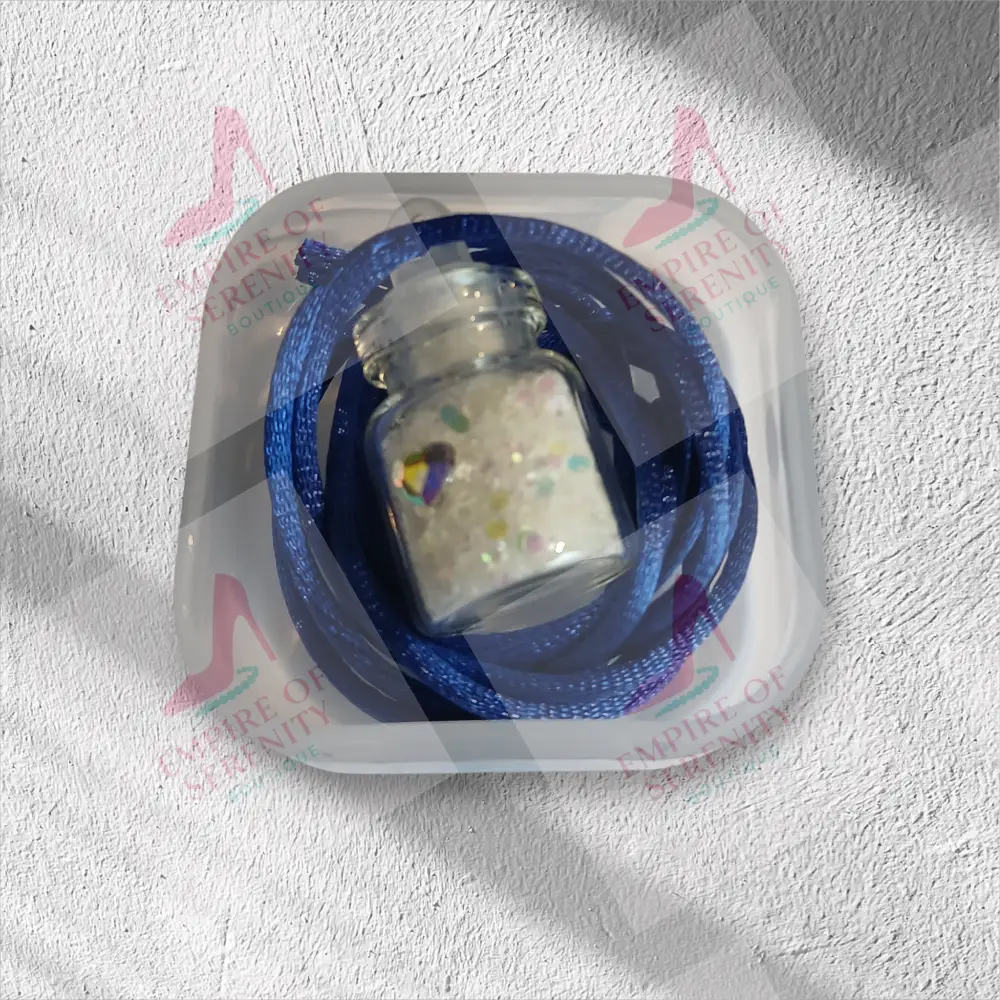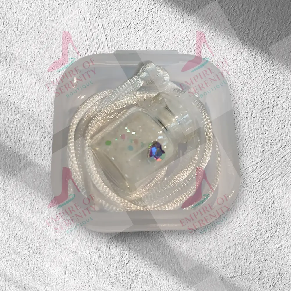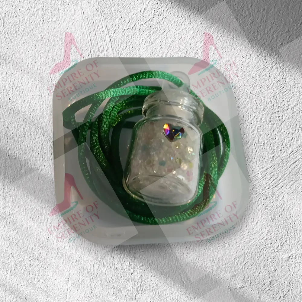 This tiny necklace comes with a tiny vial of white fairy dust in a 1mL glass bottle, with a plastic topper. Let your little one enjoy the magic of fairy dust to wish upon or use as a keepsake. Comes on a silk cord necklace and the vial is decorated with a tiny heart charm on the bottle. The necklace measures around 12 inches long and is available in a variety of colors. Each necklace is placed inside a plastic container and then hidden in this beautiful forest green butterfly box for safekeeping. For Larger quantities or bulk orders, please contact us for a custom order and we will be happy to assist you.