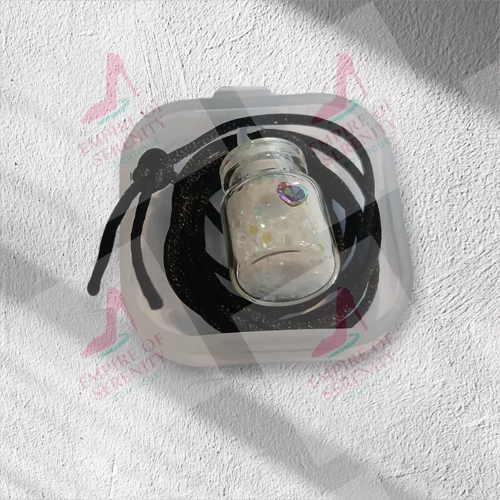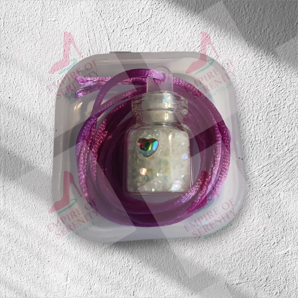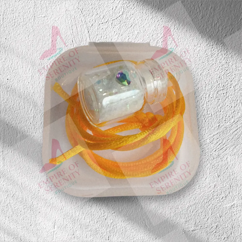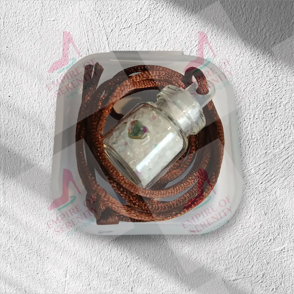 This tiny necklace comes with a tiny vial of white fairy dust in a 1mL glass bottle, with a plastic topper. Let your little one enjoy the magic of fairy dust to wish upon or use as a keepsake. Comes on a silk cord necklace and the vial is decorated with a tiny heart charm on the bottle. The necklace measures around 12 inches long and is available in a variety of colors. Each necklace is placed inside a plastic container and then hidden in this beautiful forest green butterfly box for safekeeping. For Larger quantities or bulk orders, please contact us for a custom order and we will be happy to assist you.