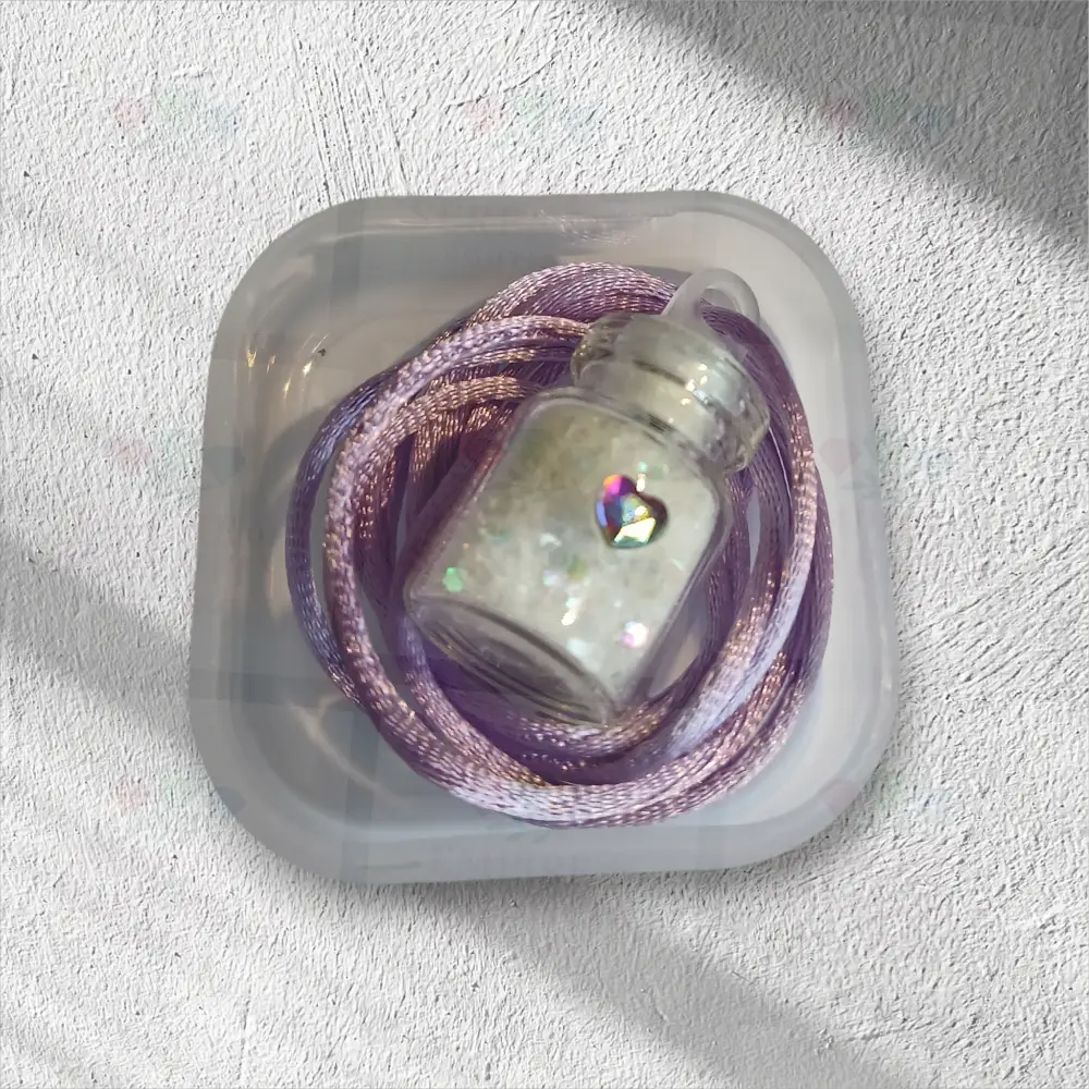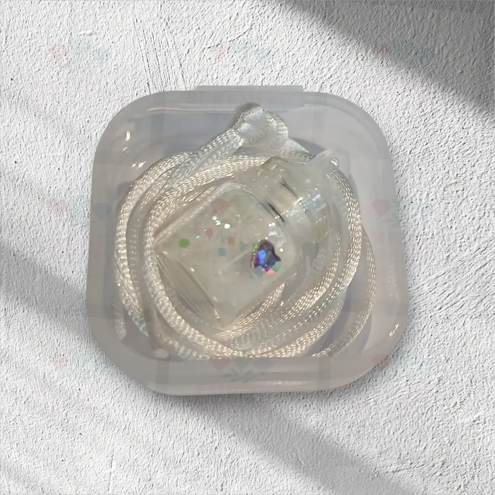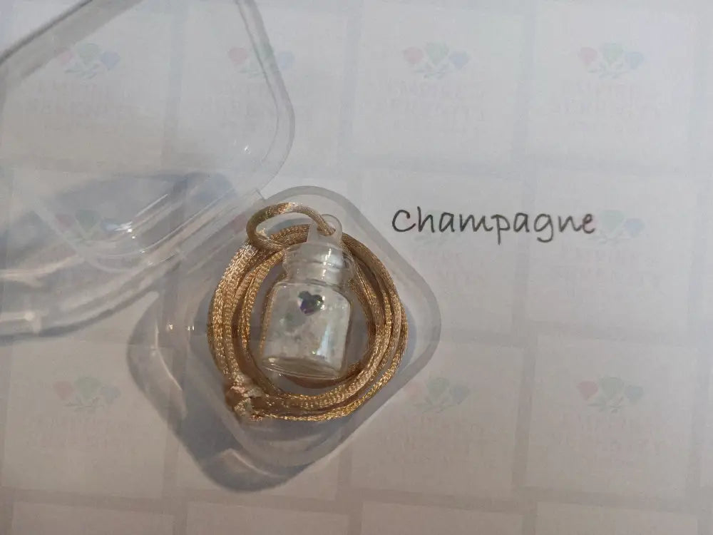 This tiny necklace comes with a tiny vial of white fairy dust in a 1mL glass bottle, with a plastic topper. Let your little one enjoy the magic of fairy dust to wish upon or use as a keepsake. Comes on a silk cord necklace and the vial is decorated with a tiny heart charm on the bottle. The necklace measures around 12 inches long and is available in a variety of colors. Each necklace is placed inside a plastic container and then hidden in this beautiful gold butterfly box for safekeeping. For Larger quantities or bulk orders, please contact us for a custom order and we will be happy to assist you.
