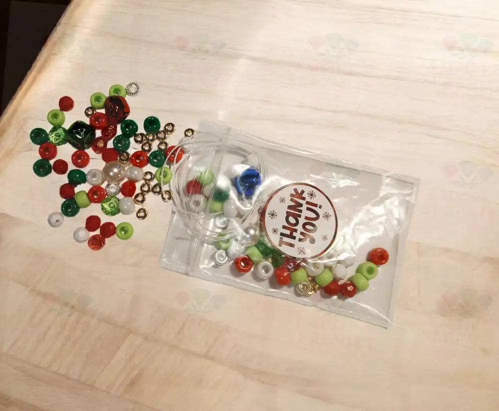 Each kit includes 20 inches of white waxed cord and 112 beads in total, including three festive Christmas bells, a sparkling assortment of silver and gold spacer beads, a variety of classical  faceted beads, and mix of Christmas-colored pony beads for added shimmer.