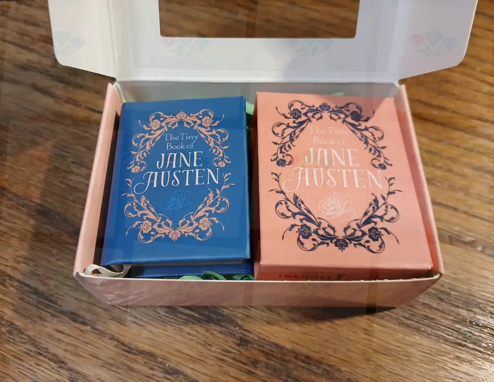 Are you a lover of books? Someone who enjoys holding the book as you read through it. Welcome to the world of teeny tiny things! These books measure 1.5 inches wide and are 2 inches tall. each one comes with a book covering and is placed inside a box to preserve it in the gift giving process. The Jane Austen Book is a collection which includes Sense & Sensibility, Pride & Prejudice, Mansfield Park, Emma, Northanger Abby, Persuasion, and Lady Susan. Choose your favorites or collect them all to create a miniature library collection!