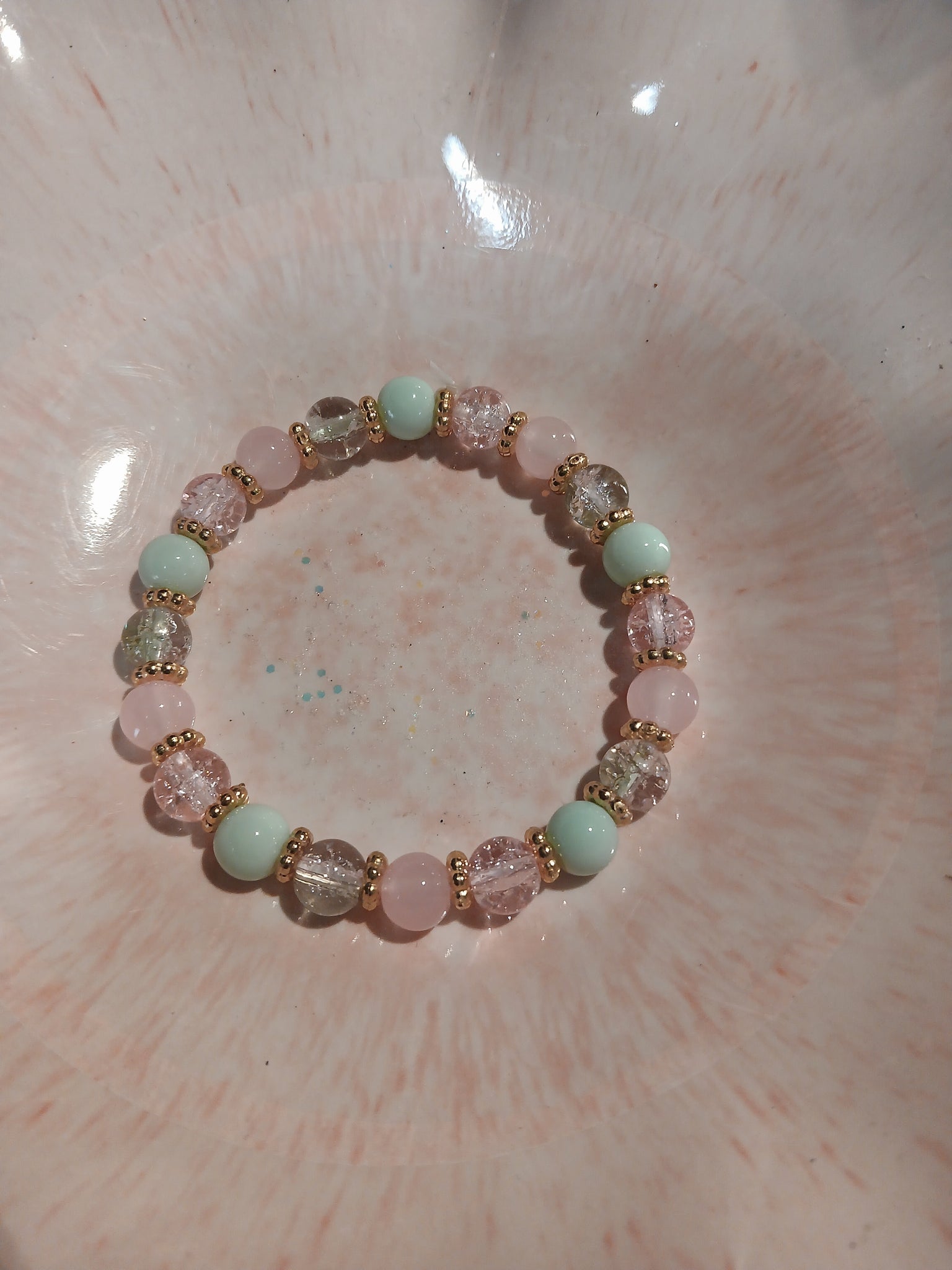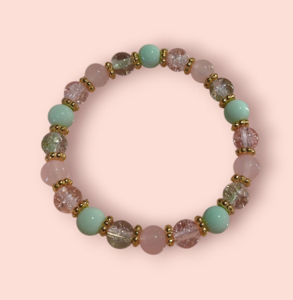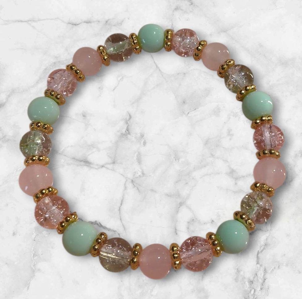 This beautiful handmade bracelet is fashioned with glass beads and stretch cord. It comes in a soft satin pink bag and placed inside this unique party favor box. Perfect for party favors or a one-time gift. For larger quantities which exceed availability, please use our contact page and I am happy to make them in bulk orders. For free repairs, use our contact page and I will be happy to assist you.