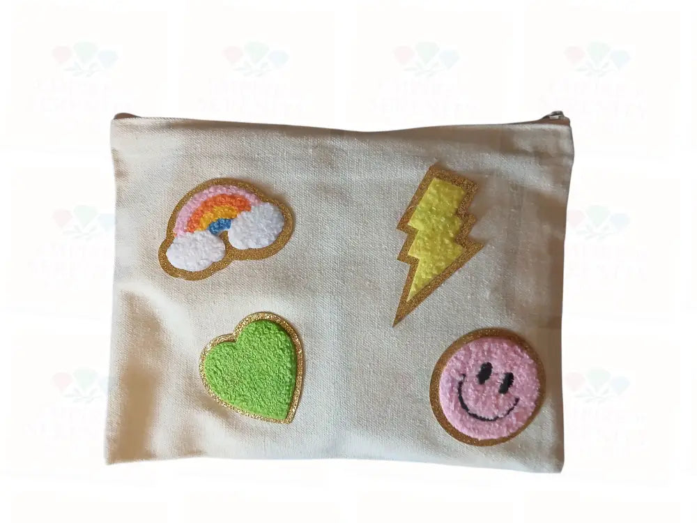 Introducing the bag of quiet activities! Enjoy some quiet while your child delves into a world of enjoyable and fun activities. This canvas bag is decorated with fluffy patches, in various colors.  The choices are available by the color of each heart on the bag. Inside is a miniature tangram puzzle with instructions to construct a variety of options, a miniature LCD writing tablet, felt tic-tac-toe and a miniature deck of uno cards. Colors of items inside vary. E