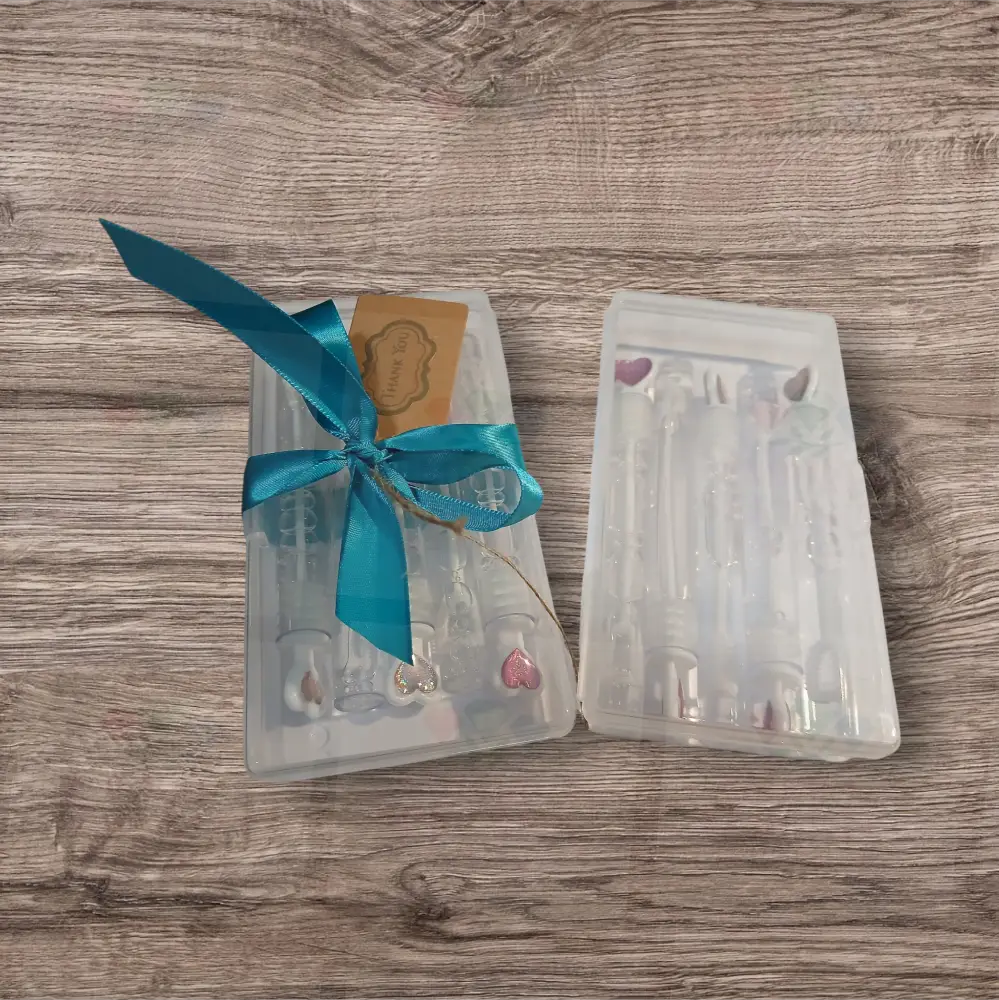 Wedding bubbles are a hit at any event. Give the gift of a box of bubble wands at your event. Placed in a carry case for your convenience, this simple decorative favor is sure to bring joy to the recipient. Tied together with a satin ribbon, the final touch is placed with a thank you tag.