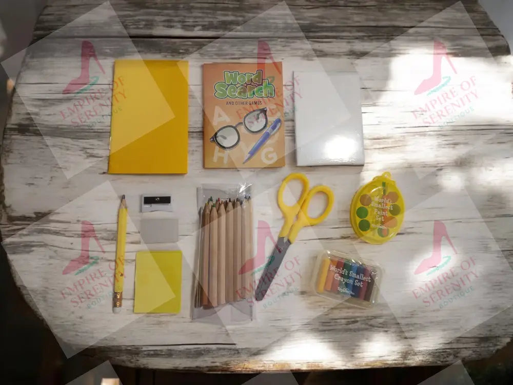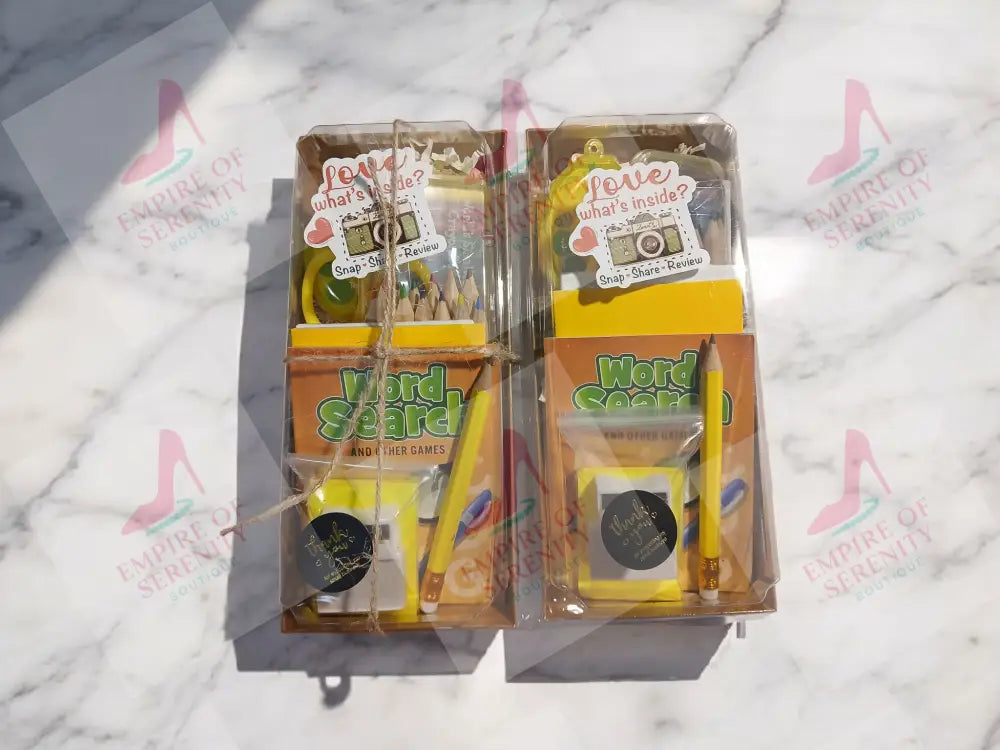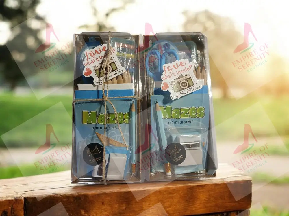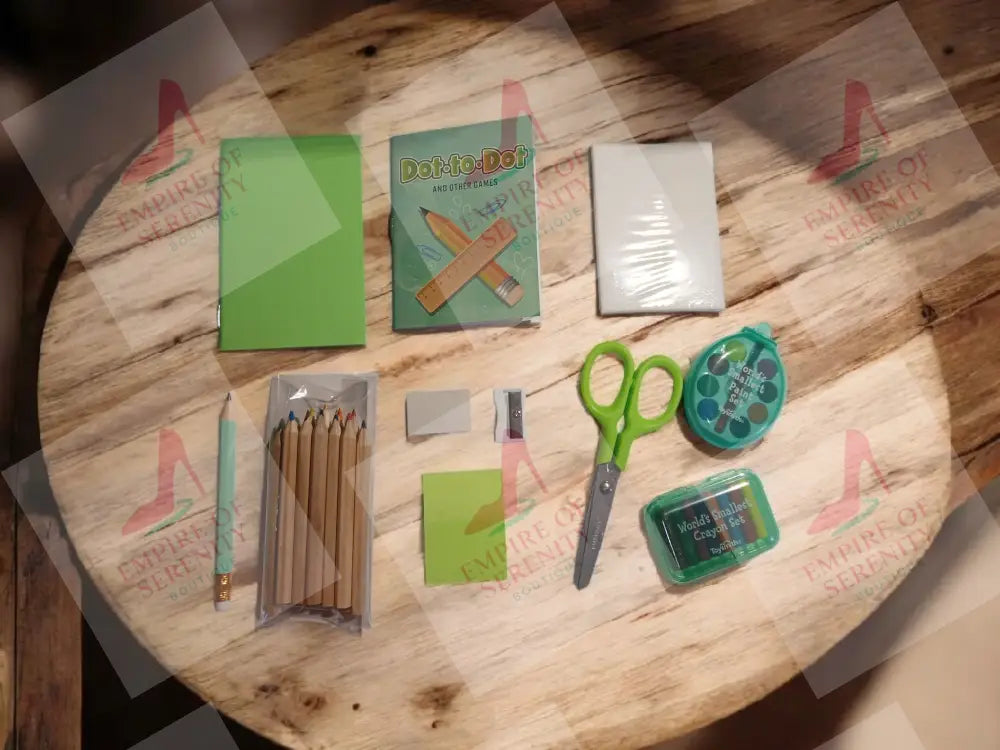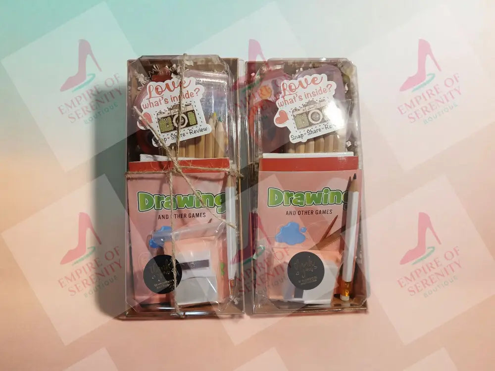 Each set features a delightful collection of mini art essentials, including a miniature crayon set, paint set, and colored pencils, along with a tiny eraser, pencil sharpener, and a golf-sized pencil. It also comes with a matching set of miniature sticky notes, activity book, a notebook, an art canvas measuring 2.5 x 3.5 inches, and a small pair of scissors. All pieces are thoughtfully paired together to create a charming, colorful art kit that inspires creativity in the cutest way!
