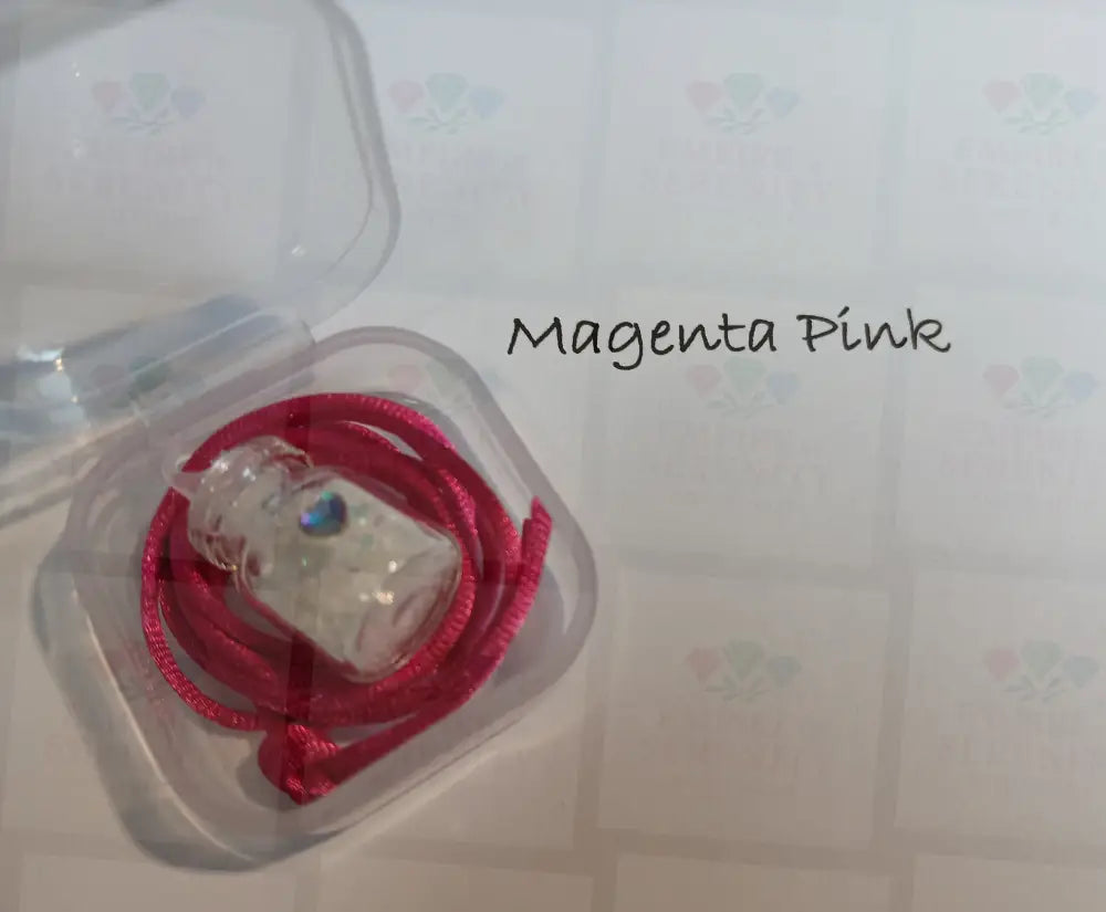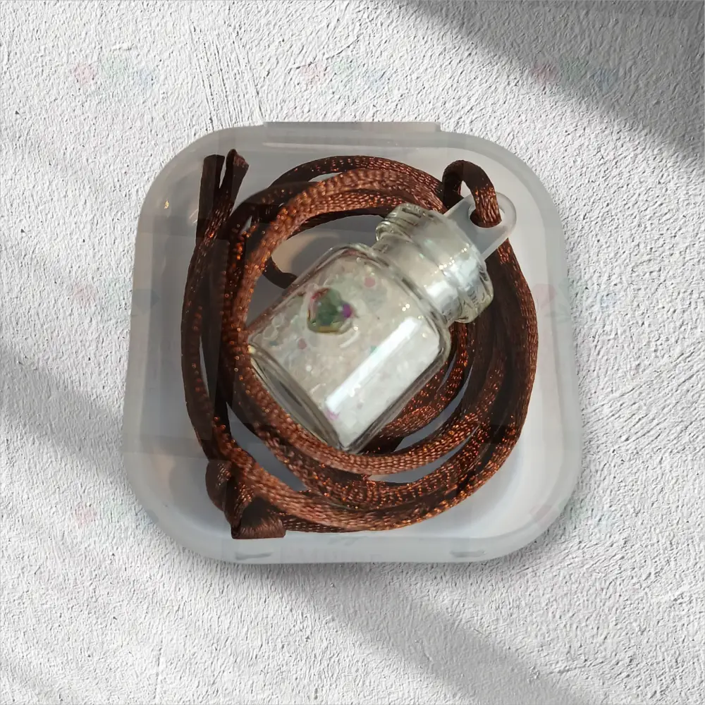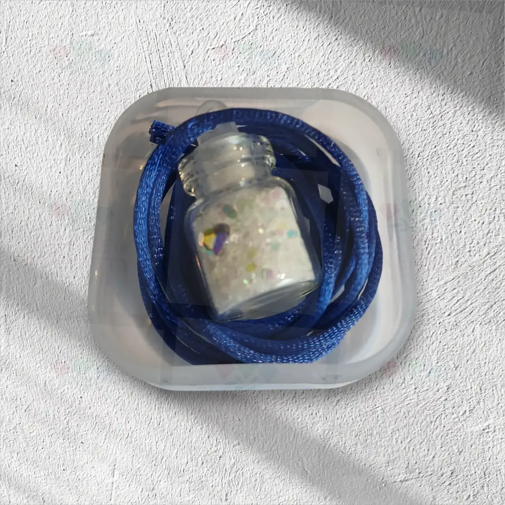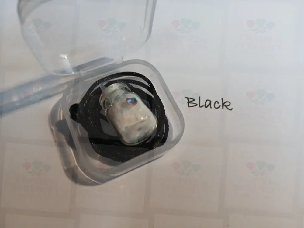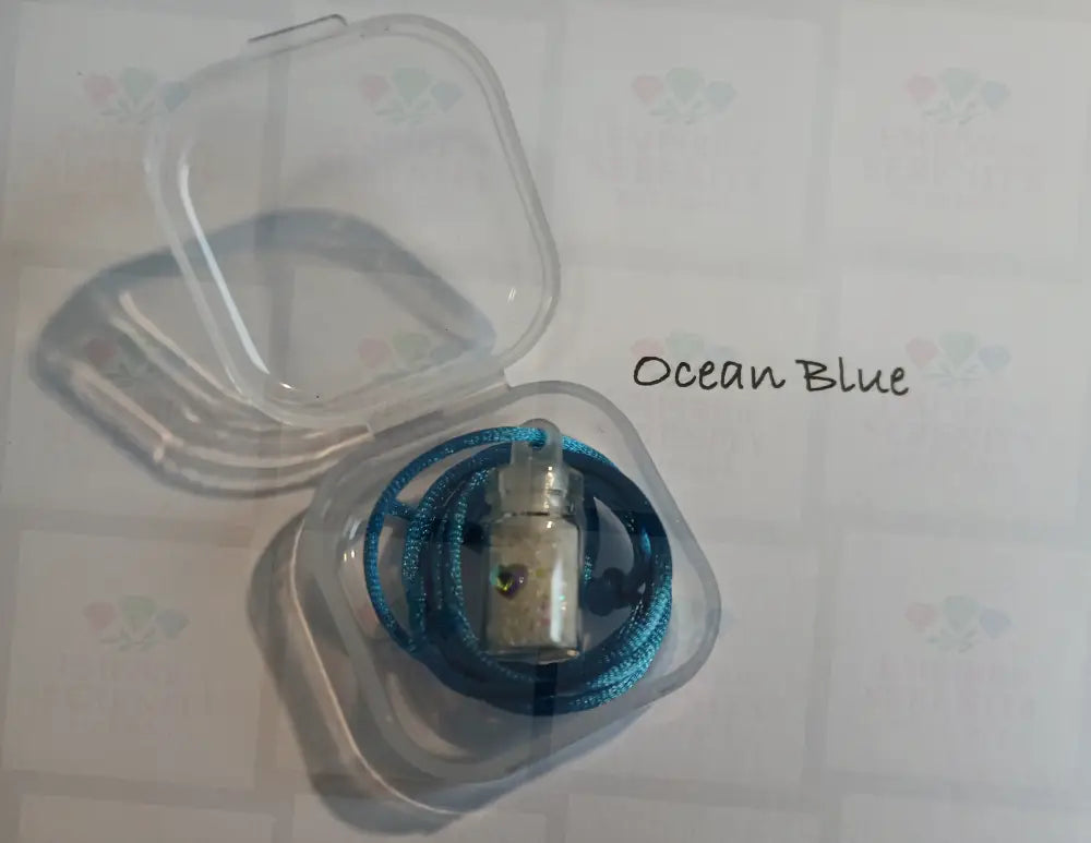 This tiny necklace comes with a tiny vial of white fairy dust in a 1mL glass bottle, with a plastic topper. Let your little one enjoy the magic of fairy dust to wish upon or use as a keepsake. Comes on a silk cord necklace and the vial is decorated with a tiny heart charm on the bottle. The necklace measures around 12 inches long and is available in a variety of colors. Each necklace is placed inside a plastic container and then hidden in this beautiful turquoise blue butterfly box for safekeeping. For Larger quantities or bulk orders, please contact us for a custom order and we will be happy to assist you.